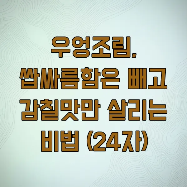 썰어 놓은 우엉은 찬물에 5분 정도 담가 전분기를 빼주세요. 중간에 한두 번 물을 갈아주면 더 좋아요. 그 다음, 쌀뜨물이나 식초 물(물 1리터에 식초 1큰술)에 10분 정도 더 담가두면 우엉 특유의 떫은맛과 흙내음이 훨씬 줄어들어요. 이렇게 미리 손질해두면 조림 요리 시 훨씬 깔끔한 맛을 낼 수 있거든요.