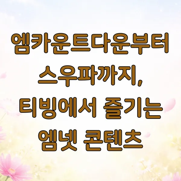 티빙을 통해 엠넷 실시간 방송을 보는 것 외에도, 다양한 엠넷의 인기 콘텐츠를 즐길 수 있어요. 대표적으로 매주 목요일 생방송되는 '엠카운트다운'은 물론이고, '쇼챔피언' 같은 음악 프로그램도 실시간으로 만나볼 수 있죠.